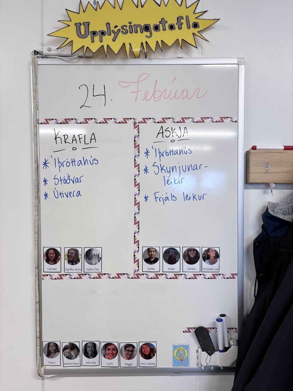 Í fataklefanum höfum við bætt við myndum af starfsfólki á upplýsingatöfluna okkar og þannig auðveldar það börnunum og foreldrunum að sjá hvaða starfsfólk er á hvorri deild yfir daginn :) Einnig ætlum við að reyna að vera duglegri að setja þar á það sem við erum að gera yfir daginn ásamt tilkynningum þannig að það er mjög mikilvægt fyrir foreldra að skoða þessa töflu :)